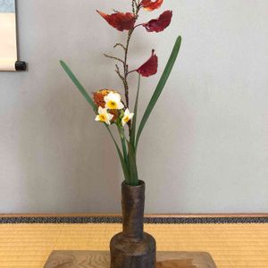今日の床の間の花。 キブシの照葉と西王母。 本格的に寒くなってきましたね。 皆様、ご自愛ください😆
