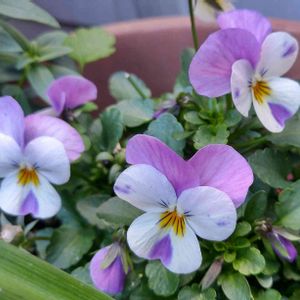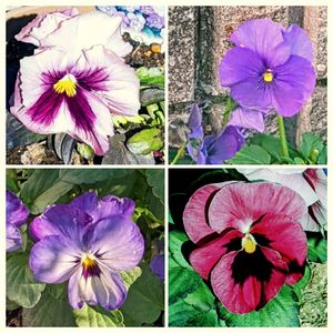 ちょっと街までお出かけしたので 🎼バスを待つ間に🎵 🌸💮🌼🌿を📸わ〜 オジさん顔のパンジー、ビオラ集まりました。