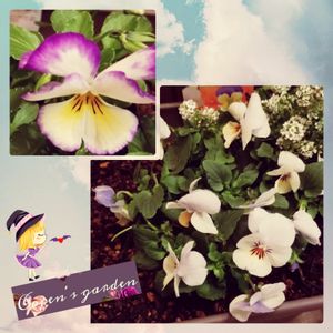 パンジーとハナニラ球根(イフェイオン)を寄植えにしました。 今日は🌬が冷たくて、🤲がかじかみました😂 フラワースタンドも組立てました。木製か、アルミ製か悩んだ末、結局プラスチック製😅 picは、オジさん顔パンジーたち ほぼウチの子
