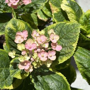斑入り紫陽花 マジカル ショータイム🌟 葉にはクリームイエローが不規則な覆輪状に入り、鉢植えや庭でよく映える。花もちがよく分枝性に優れる。 と、説明されていた紫陽花です〜♡ 初開花はピンク系でした❣️ ブルーの肥料あげたハズなんだけど🤔 咲いてくれただけでも良かった💓 一緒に購入したマジカルパーティータイムは成長遅し💦 来年に期待ですね!