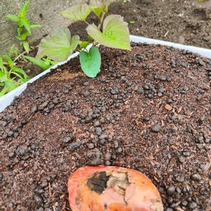 蔓苗を取りたくて〜芽が出なかったのが今頃になって こんなに大きなイモでは無かった気がする 堀だそうとした時ちぎれたのかね〜暫く観察デス