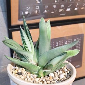 ガステラロエ "グリーンアイス"。 アロエとガステリアの属間ハイブリッド。 大型になるらしいが、今のところ成長はゆっくり目。 辰年なのにこの鉢 使ってなかった😆