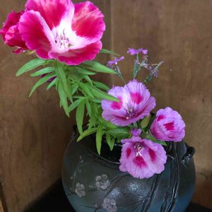 切り花を頂きました。 和風な花瓶と相性良いです。😊