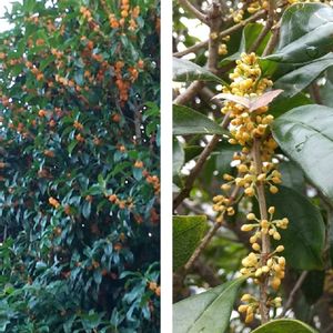 敷地内花壇の金木犀🎵 左は半月前 右は現在2度目の開花です❗️ 2回も咲くのね~ 昨年は一回でした。