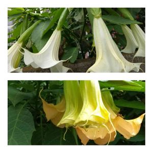 エンジェルトランペット 花壇の花✌️ 白色も黄色も咲きました🎵