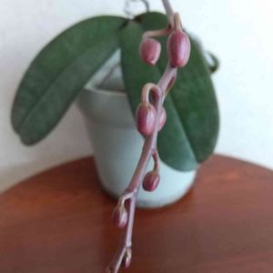 うわ~嬉しい😃💕 ご長寿胡蝶蘭🎵 25年間 毎年咲いてる🎵 今年もお目覚め🎵 咲き始めました。 30年はまだ硬い蕾です。 暫し待ちます。