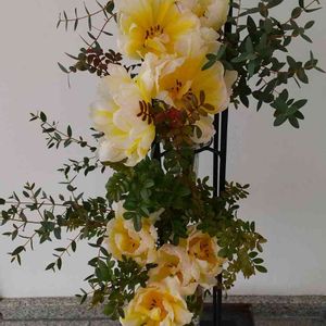 ティールームの入口でお客様お出迎えの花🌷 まさかのチューリップ⁉️⁉️⁉️ 八重咲きだそうです。 生けた方も素敵よね👏