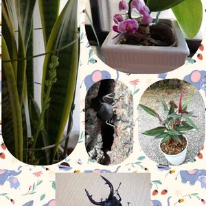 🏷️オケツの日 参加します💕 ↓そろそろ我が家のクワガタさん見れるかなぁ😍と覗いたら二匹いた🎶大きい方はすぐ隠れちゃったので結局まん中のpic だけ撮れました😁 下のは時々家の中に入ってくるので😅(去年撮影) →クテナンテクメリアーナ🌼 初めて登場🎵 6年前今の職場に移った頃、お外に捨てられてた😱 今年東南の出窓に置いたらやっと綺麗✨な姿にo(^o^)o ←今年もサンスベリアにお花🌼が👍 ↑2年目のミニ胡蝶蘭に今年もお花🌼が👍 でも・・もうボロボロ😧