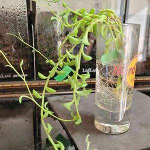 ✨🐬🐬🐬✨ 花友サンから頂いたドルフィンネックレス🐬 順調に発根しました💕 これはいつ土に植えてよいの(・・?💦 グリネ・アーモンド・三日月・ルビーも水差しは順調に発根中です🎶 土差しは外で頑張ってくれてます❄️ 発根してくれてると良いけど💦