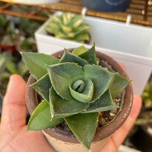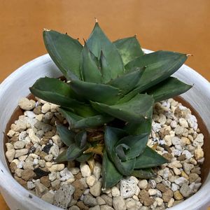 おはようございます☁️⛄️ 寒いですね〜🥶 写真は直径約5cmほどの小さなアガベです。 極姫とも呼ばれていることを、タグ付けで知りました。 小さいながらアガベらしさもあり、なかなか良いですね。 植替えは必要なさそうですが、根を確認しながら、鉢はそのまま培土だけ替えますよ。