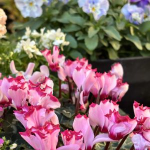 おはようございます😊❣️ ガーデンシクラメン2種 セダムオータムジョイ 今年地植えしたパールアカシア 春に咲いてくれるかな🟡🟡