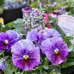 おはようございます😊❣️ ビオラなごみももか2枚 サントリーミルフル2枚 紫色ストック💜 今日は肌寒いですが良いお天気です🥰☀️