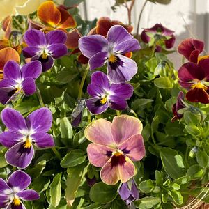 11月に切り戻したゲブラナガトヨさんのオリジナル ビオラがきれいにまた花をつけてくれています✨ 1ポットに3色くらい?のビオラが入っているタイプで、それを2ポット、バスケットに植えています。 アンティークっぽい落ち着いた色合いなのに、とても華やかで大好きなビオラです🌸