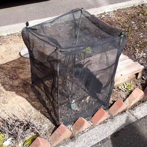 寒冷紗をロックミシンでダダーっと四角く縫って山椒の木にかぶせました! アゲハチョウ 来るからね💧