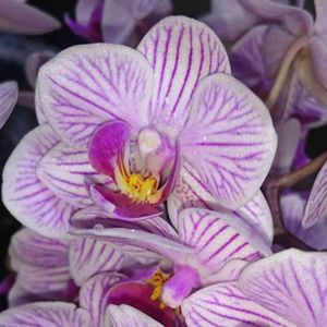 おはようございます😆🌞 Phalaenopsis sp 名無しのミニ胡蝶蘭 咲きました☺️🌸🌸🌸 めちゃくちゃカワイイこの子をわたしは花簪(花かんざし)ちゃんと呼んでいます。 椎名洋ラン園の株で一昨年あたり出回っていたのですが。まだ固定していなかった品種なのでしょう。無銘でした。 ピンクガールの交配作出の系統と思われます。 割に根の張りが難しく育てにくい感じで、保険でもう一つ持っていた子は枯れてしまいました😭 もう一株あるのはあまり花のカールが強くなく、この子がダントツカワイイので大事にしないと。 ヘゴ付けにしましたが裸根ではやはり水分不足だったのでたっぷり水苔を巻きましたら、状態が良くなりました😆 裏が紫色で銅葉に近く、新葉にはうっすら斑が浮いたりします😋 そして、ふんわりと清涼感のある素敵な香りもするんですよ❣️