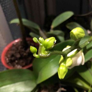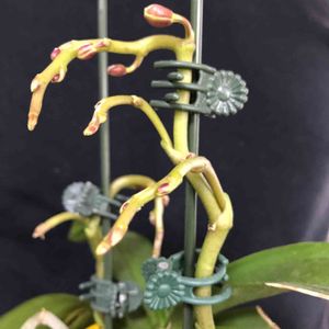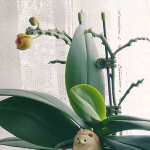 フダ落ち値下げのホームセンターミニ胡蝶蘭500円なんとか調子戻して花芽もつきました 何色の花が咲くんだろ?