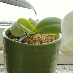 先ほどのミニコチョウランが3月に終わった時に 茎の上部に🌱と根が出ていることに気が付きました😅 とりあえず切って根の方を水苔にさして見ました ちょっぴり大きく成って来て居るようで かわいいです😌💓 早く大きくな〰ぁれ( ^-^)ノ∠※。.:*:・'°☆