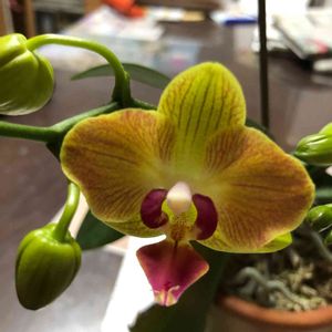 「ミニコチョウラン」 昨年植え替えし今年も咲いてくれました。 沢山花はつきませんが嬉しいです😊🌸💞