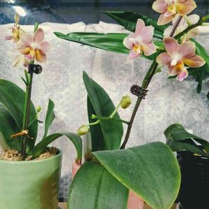 おはようございます😄☀️🌸 Phalenopsis Jiaho’s Pink Girl’Sakuran’ ピンクガール ‘サクラン’ 椎名洋ラン園のミニ胡蝶蘭です。 満開になりました😍💕 今年は置場のせいか咲き進むのが遅めだったなぁ。なので途中で一輪萎れちゃいました。 シレリアナをぐっと小ぶりにしたようなお花🌸🌸🌸 コラム近くのそばかすもそっくりです☺️ そして、鼻を近付けるとシレリアナのようにとてもよい香りがします😆💕 枝打ちもして、トータル10輪。でも去年より少なくなっちゃった。葉数は充分だから、やはり置き場ね。 陶器鉢に軽石+バーク+ココチップのミックスコンポスト植えです。