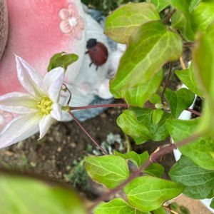5月に迎えたクレマチスの苗 もう咲いた😊フルディーンです🌱 うれしくって✨ 一番の花をご紹介。 たくさんの花を見せてくださいね💕