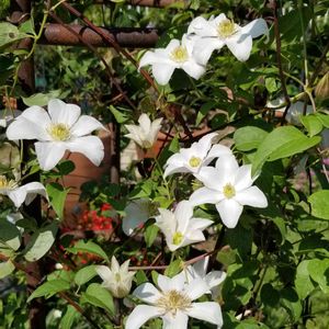 こんにちは。 大阪府立花の文化園 クレマチスコーナーより クレマチス、 フルディーン。 この花も、きれいな清楚な白い花ですね。