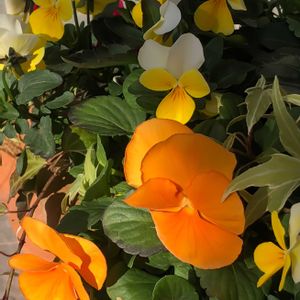 今咲いているパンビオさんたちです🤗♪ 1️⃣ミルフルアンティークフリル 花付き良い、素敵な花色、ふりふりで可愛い、お手頃価格❣️来季もお迎えします😄 2️⃣左)ばらいろももか 右)よく咲くスミレラズベリー ほとんど見分けがつきません💧 イエロービーコンとスーパーアリッサム アリッサムは弱った見切り品だったのに…すごく元気に💪😅 3️⃣名無さんですが色白美人さん♪ 4️⃣2色入りビオラとよく咲くスミレソーダ白いビオラが押されてます💦