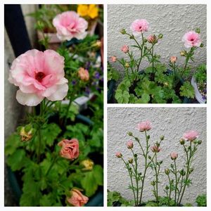 左👈 キンギョソウ ずっと休んでたキンギョソウ 咲き始めてきました。 右上👉 ラナンキュラスラックス (アイオリア ピュタロス サティロス) 先月の中旬から花瓶に飾ってます。 とても花もちが良いですね👍🏻 かわいい (ღ˘⌣˘ღ)𓂂𓏸♡ 右下👉 歩いて1分の実家で咲いてます。(地植え) 冬に剪定したくらいで ほぼ放ったらかしです。 とても丈夫で繰り返し良く咲くので手抜きしてます(^^;; みどりのまとめでペチコート水仙と寄せ植えしていた薔薇は、この薔薇を挿し木したものです。 鉢植えと地植えでは、こうも違うのかっ∑( ̄□ ̄;)!!! ってくらい違いがあります。 4/17