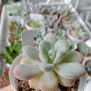 夏は緑パッカーンしてた子たちが可愛らしくなってきました😚💕 いろんな顔があるからいろんなエケベリア集めるのやめられない〜