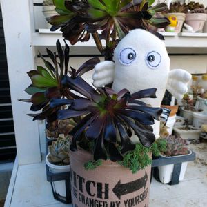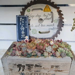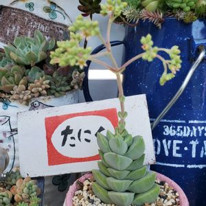 とっとり花回廊の多肉寄せ植えWS行って来ました😄 鉢持ち込みのWSだったので自作のリメ鉢にモリモリ詰め込みましたよ✨ このWSを教えて頂いたGSの花友さんにも初対面👀✨顔知らないのにね、GSでの投稿からこの方かな🤔と声をかけたら当たり🎯逢えてお話出来て嬉しかったです😆⤴️💓 ②🏷️毎月13日と14日は葉挿しの日🌿 なかなか大きくならなかったサブセシリスがこの夏めっちゃ大きくなりました🎵 確か…3年くらいかかってこのサイズなんだけど💦 ③KOWサン♪月の雫サン♪のハロウィンセットGET出来ました❤️ 鉢もピックも多肉ちゃんもみんなめっちゃ可愛い~🤩 ④購入記録🌿 ハニーミントさんの苗ポチリました🎶 6苗と土と肥料のセット 立田錦と斑入りリトルゼム 多肉狩りの予定もあるのに…我慢出来なくてポチリ💦 ⑤パンクチュラータのお花が咲いてました✨でも葉の色と同化してて…なかなか気が付かなかった…🤣