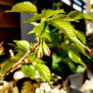 花芽が膨らむのを待っていましたが、 開く芽からはどれも葉っぱが出てきて、、、 もはや葉桜🤣 花が咲くと思われるつぼみちゃんは2つ🍒 全集中して待ちます🌸🙏🌸