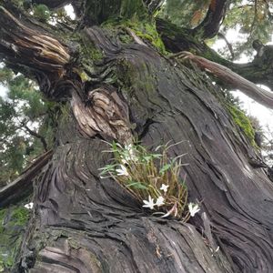 カイヅカイブキにセッコクが咲いています✨ 大きな老木で、上の方は苔むしていています。 セッコクには居心地が良いのでしょうね😊