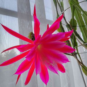 クジャクサボテンです😆😆😆💕 今年も咲いてくれました👏👏👏👏👏 実は去年、植え替えをしたんです。 花芽がつくかどうか心配してましたが、今年は白のクジャクサボテンにも初めて花芽がついたので大きく期待してました!! でも、順調に成長したのはこの子だけ…他のつぼみちゃんたちは大きくなれずに落ちてしまいました😢 今年はこの一輪だけですが、咲いてくれたことに感謝しながら楽しませてもらってます😌🩷