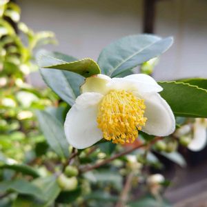 チャノキです✨ 庭の目立たないところにあるので、花を見逃すこともありますが、今年はきれいに咲いてるところに出会えました🙆💕
