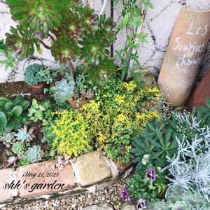 シェード小道 モッコウバラがモリモリ♡この小道いろいろ植えてあるので、毎日水やりお手入れでウロウロ アジュガや、小花 宿根草が出てきて楽しい場所です♪