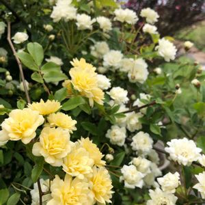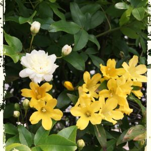 いつもはキャロライナジャスミンの方が一足先に花が咲くので白モッコウバラとなかなかコラボできないのですが今年は一緒に咲いてます💕