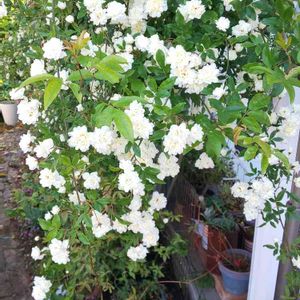白モッコウバラが満開です💖 お花が散ったら剪定をしなくては✂️ 夏に向けて2週間に一回ぐらいは剪定しないと釣り竿みたいにビューンと伸びてしまいます😅