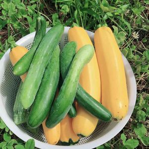 収穫! ズッキーニとミニキュウリ?です! キュウリは普通の大きさになってしまいました(´-ω-`)