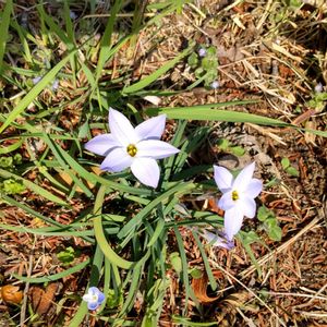 花ニラ(イフェイオン/アイフェイオン) 【1/2 花色 青紫💙💜】 一年のうち、春だけ地上に姿を表す多年草𖡼.𖤣𖥧𖡼.𖤣𖥧𖡼.𖤣𖥧𖡼.𖤣𖥧𖡼.𖤣𖥧𖡼.𖤣𖥧𖡼.𖤣𖥧 別名に、スプリングスターフラワーやベツレヘムの星なども。 今の時期だけの可愛い小さな花は、白、ピンク、水色、薄青、青紫🤍🩷🩵💙💜 このpicの濃いめの青紫の花は少なめ💙(←ロルフィドラーという名前だそうです)ですが、 わたしのGS のアイコンにもさせてもらっていて、いつもお世話になってます (´•᎑•`)♡🎶