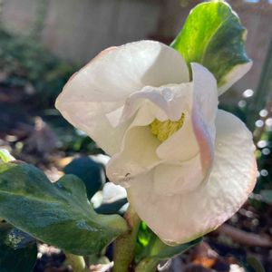 二年目のクリスマスローズ マリア様咲いてきました🤍 庭の入り口で、朝日を受けて鉢植えの中で早い開花です 春から夏の花が消えても、マリア様だけ復活しました‼️