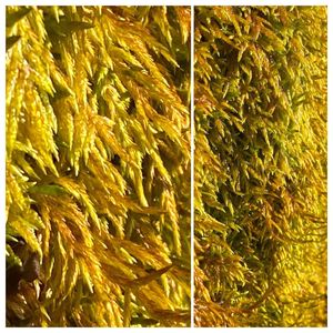🍂葉が落ちたから、山肌に日が当たって こちらの苔は美しい金髪の髪みたいに輝いてました。ヒロハツヤゴケ?