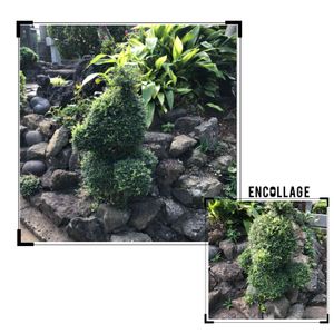 💚ヒヨコ🐥に見える?💚 お彼岸で父のお墓参りに行ってきました😊 実家まで🚙10分、お墓徒歩🚶♂️15分 実家のゴールデン🐕と、うちの🐩🐩でお散歩しながら行ってきました😊 父のお墓の前が少し小高くなっていて、木が植えてありますが、管理する方の遊び心でしょうか?こんな形🐥にカットしてありました❣️