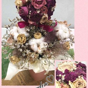 おはようございます(*˙˘˙*)ஐ バラのドライフラワーで、バラのトピアリーをつくりました゚・*:.。❁ 自分でオアシスを○くカットしてから…アレンジするって✨楽しいです゚・*:.。❁ 今日も1日普通に頑張ろっ🌸🐰🌸