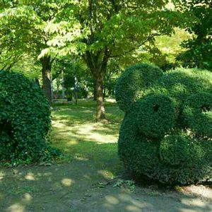 右側「パンダさん」か「たぬきさん」? 左側「ぞうさん」かな~ 最初は ふらふら~と普通に通りすぎたのですが 走って戻りパチリ📷 マジマジ~に見ると職人さんの腕のスゴさに感動です🐘🐼 どのくらい この形が維持できるものなのでしょうか? 先日のアップルマラソンの近くの公園です🍂