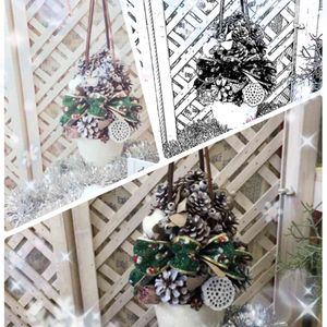 三日月さんのみどりのまとめを見せて頂き、初めてリメ鉢作ってみました😊 水仙のトピアリーで記念写真💞