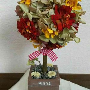 元気色トピアリー(*^ー^)ノ♪ 職場の花壇で咲いてた マリーゴールドをドライに…… 元気に頑張れるように 職場に飾ります✊🎵