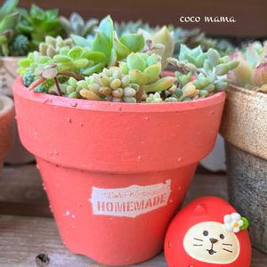 🏷️毎月15日はいちごの日🍓 🏷️毎月15日はインコの日🦜 参加しま〜す( ❁ᵕᴗᵕ )"♡ 多肉寄せ ちょっとスカスカ🤣 コンコンブル いちごだるま猫😼🍓 ③④ こりんさんの新作ことり鉢🐦🧵🔘