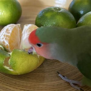 いつも忘れてしまうインコの日🦜 久しぶりによろしくお願いします 1️⃣香り立つ極早生ミカン大好きです 2️⃣ここからいつも部屋を見渡して 何して遊ぶか考えてるようです♪♪
