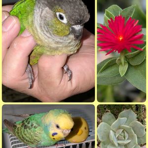 毎月15日はいちごの日🏷️ 〃 インコの日🏷️参加しまーす😊 ↖️さくら餅子さんのいちごのリメ鉢と紫太陽 ↗️自作インコの鉢とハオルチア、ピグマエア・オカメインコもいまーす😆 ↘️こぼれ種から育ったオキナワスズメウリ ⬇️花友さんからいただいた新米 ↙️こちらもいただいたナス🍆
