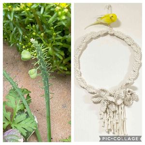 おはようございます☀️ 庭パトしてたら✂️し忘れたムスカリに種が付いてました💙 種から育てると3年かかるらしいので種取りはしませんが珍しいので放置しときます😆 そして今日は🏷毎月15日はインコの日 参加させて下さい❣️ 今回は弾かれなくて良かった💕 去年ハマりまくったマクラメの手作りの壁掛けが🍋の休憩場所🐤