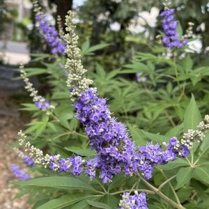 今年2回目の花期がやってきた西洋ニンジンボク💜 1回目に劣らない勢いの花数。たくさん咲いてくれるいい花木です。 花後かなりしっかり切り詰めたのに、またでっかくなっちゃった😆 ちゃちゃっと水やりして、急いで写真だけ撮って、また部屋に篭る。 あ〜、早く庭いじりしたい〜😢